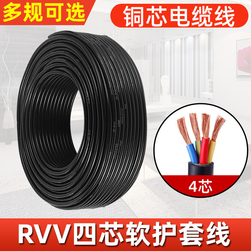 四芯rvv电缆护套线无氧铜电源线11.52.546平方4芯绝缘软电线