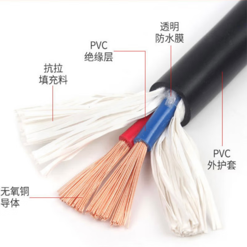 亨顺电缆线软铜芯护套线硬护套KVV5*1.5-100米