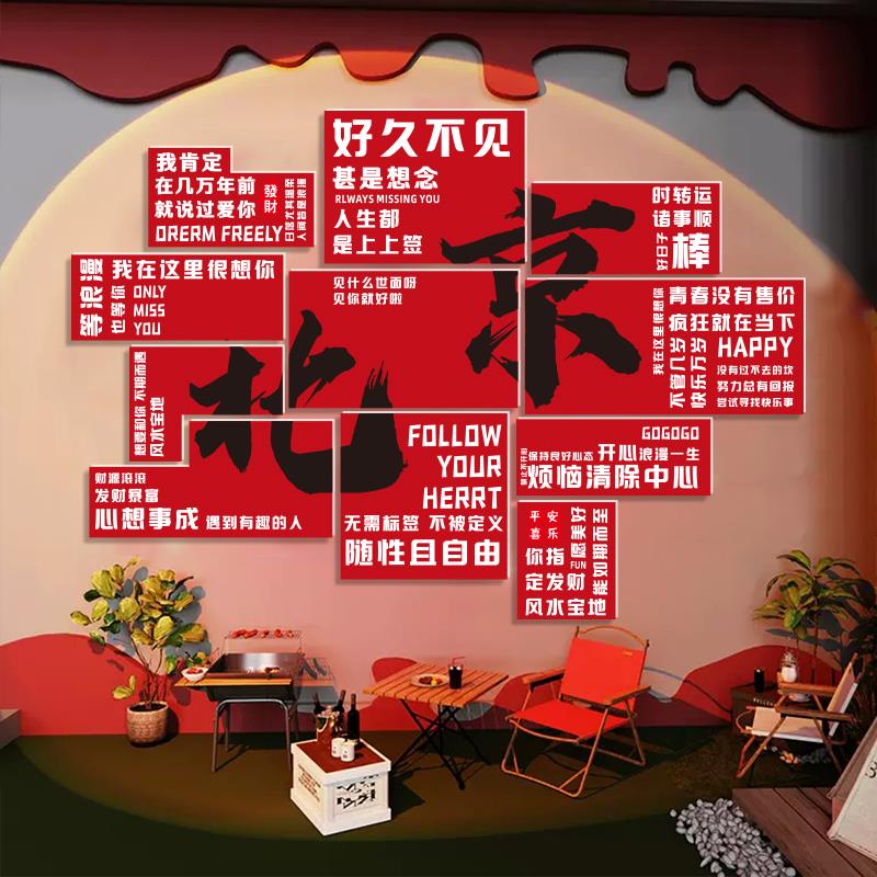 城市文化网红墙打卡氛围布置烧烤火锅店民宿院酒馆创意标语背景墙