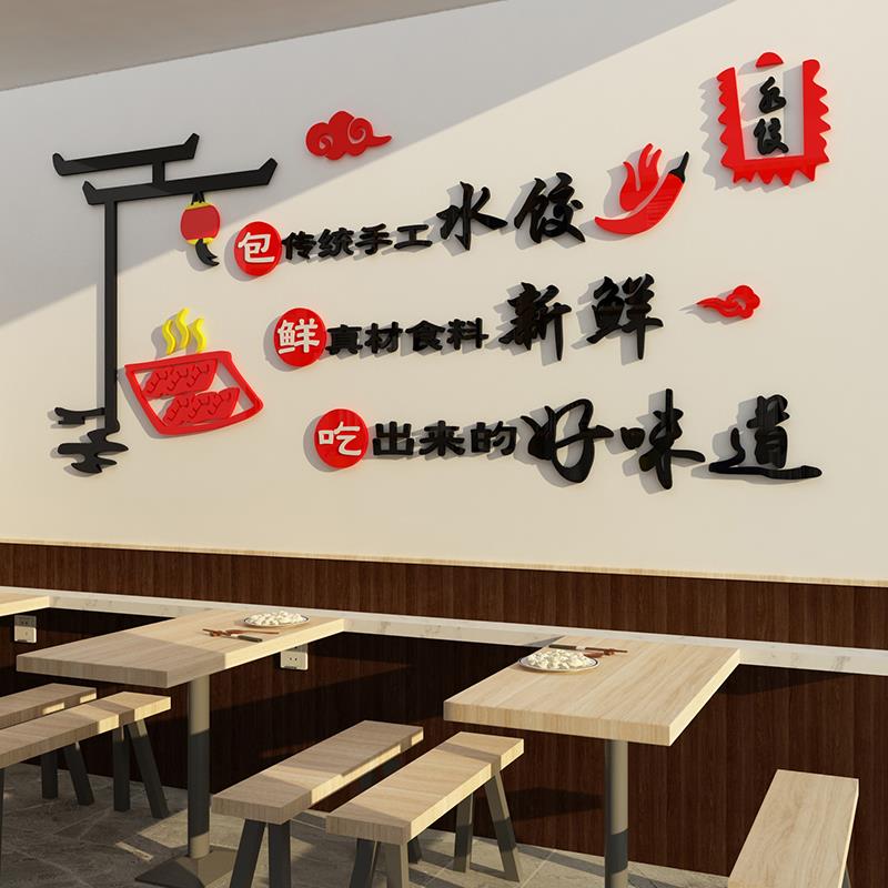 水饺店墙面装修饰品手工饺子馆早餐包子铺玻璃门贴纸海报创意背景