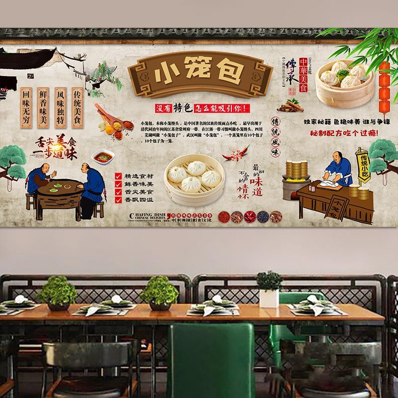 小笼包海报早餐墙贴广告饭店装饰贴纸包子馆防水高清背胶贴画2870