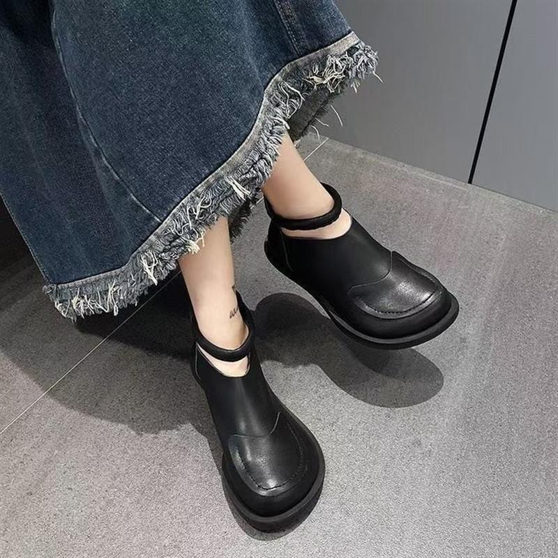 明星同款踩屎感厚底乐福鞋女一脚蹬英伦小皮鞋小众复古真皮单鞋防